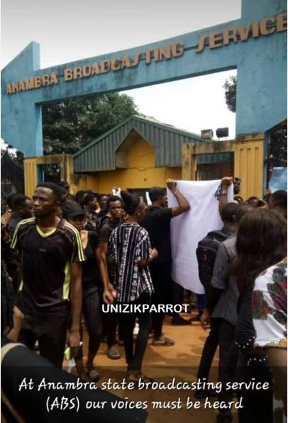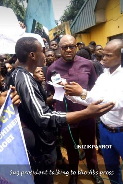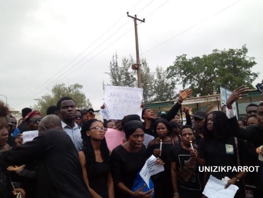Photos of students of the Nnamdi Azikiwe University, Awka, Anambra State, on Monday, taking to the streets over the death of one of their colleagues.